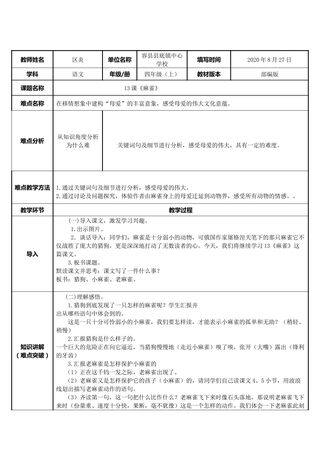 标签: 网龙、 教学资源、 教案、 新、 正规教育、 教案、 1级、 四年级、 教学设计、 文档、 K12、 重难点教案、 2020年后赛事资源、 ZYK、 有重难点、 素材类型、 小学、 语文、 人民教育出版社(人教版部编版)、 有课件教案微课、 ZYKB、 上册、 有知识点
