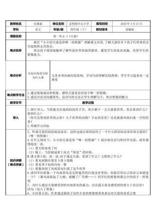 标签: 网龙、 教学资源、 教案、 优选、 新、 正规教育、 教案、 1级、 四年级、 教学设计、 高效备授课、 文档、 K12、 重难点教案、 2020年后赛事资源、 ZYK、 101教育PPT成套资源、 下册、 素材类型、 小学、 语文、 人民教育出版社(人教版部编版)、 ZYKB