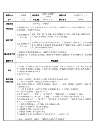 标签: 二等奖、 网龙、 教学资源、 教案、 优选、 新、 正规教育、 教案、 1级、 四年级、 教学设计、 高效备授课、 文档、 K12、 获奖教案、 重难点教案、 2020年后赛事资源、 ZYK、 下册、 素材类型、 小学、 语文、 人民教育出版社(人教版部编版)、 ZYKB
