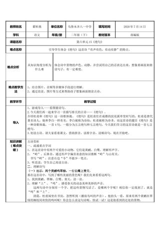 标签: 网龙、 优选、 教学资源、 一等奖、 1级、 教学设计、 高效备授课、 文档、 重难点教案、 2020年后赛事资源、 ZYK、 下册、 小学、 语文、 人民教育出版社(人教版部编版)、 ZYKB、 二年级、 教案、 正规教育、 教案、 K12、 获奖教案、 101教育PPT成套资源、 素材类型、 有课件教案微课、 有知识点