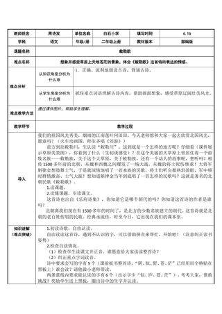标签: 网龙、 教学资源、 教案、 优选、 三等奖、 新、 正规教育、 教案、 1级、 教学设计、 高效备授课、 文档、 K12、 获奖教案、 重难点教案、 2020年后赛事资源、 ZYK、 素材类型、 小学、 语文、 人民教育出版社(人教版部编版)、 ZYKB、 二年级、 上册