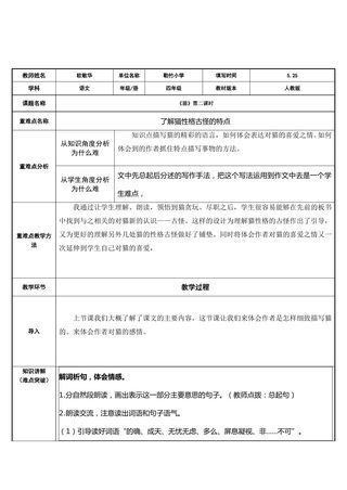 标签: 网龙、 教学资源、 教案、 三等奖、 新、 正规教育、 教案、 1级、 四年级、 教学设计、 文档、 K12、 获奖教案、 重难点教案、 2020年后赛事资源、 ZYK、 101教育PPT成套资源、 素材类型、 小学、 语文、 人民教育出版社(人教版)、 ZYKB、 上册