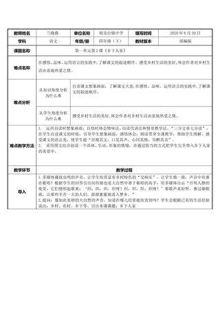 标签: 网龙、 优选、 教学资源、 三等奖、 新、 1级、 四年级、 教学设计、 高效备授课、 文档、 重难点教案、 2020年后赛事资源、 ZYK、 下册、 小学、 语文、 人民教育出版社(人教版部编版)、 ZYKB、 教案、 正规教育、 教案、 K12、 获奖教案、 素材类型、 有知识点