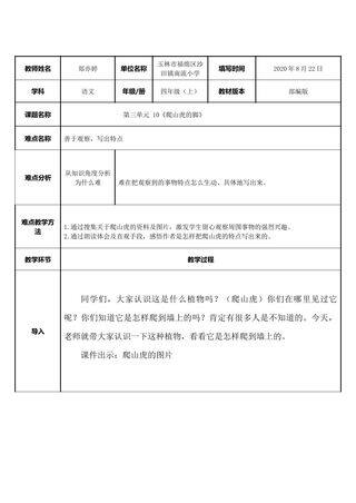 标签: 网龙、 教学资源、 教案、 新、 正规教育、 教案、 1级、 四年级、 教学设计、 文档、 K12、 重难点教案、 2020年后赛事资源、 ZYK、 101教育PPT成套资源、 素材类型、 小学、 语文、 人民教育出版社(人教版部编版)、 有课件教案微课、 ZYKB、 上册