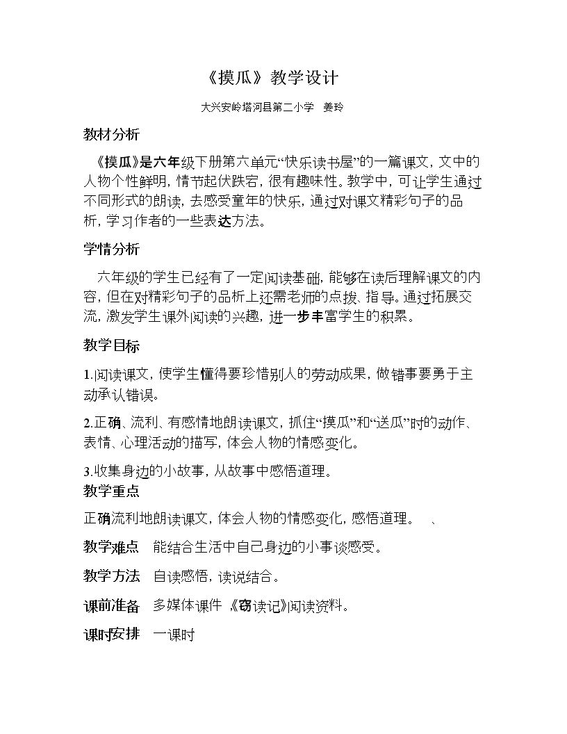 标签: 中央电教馆、 教学资源、 教案、 六年级、 正规教育、 教育科学出版社(教科版)、 教学设计、 文档、 K12、 0级、 ZYK、 基础学科、 文档、 北京师范大学出版社(北师大版)、 素材类型、 小学、 语文、 微软doc文件、 精、 选修1-2、 下册、 ZYKB、 教案