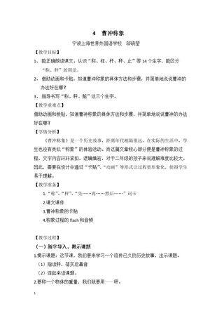 这是一套关于《4 曹冲称象》的素材,格式为DOC,文件大小为0.04 MB,页数为4页,请使用101教育PPT软件打开使用;