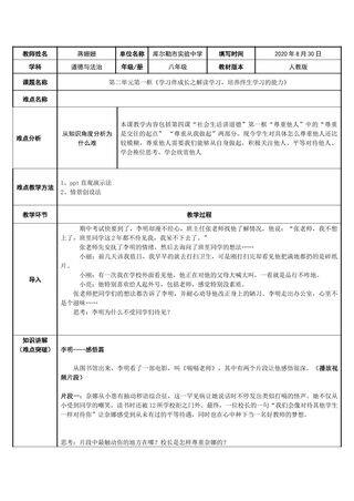 标签: 二等奖、 网龙、 优选、 教学资源、 新、 道德与法治、 1级、 教学设计、 高效备授课、 文档、 重难点教案、 2020年后赛事资源、 ZYK、 人民教育出版社(人教版部编版)、 ZYKB、 教案、 正规教育、 教案、 K12、 获奖教案、 初中、 101教育PPT成套资源、 素材类型、 八年级、 上册、 有知识点