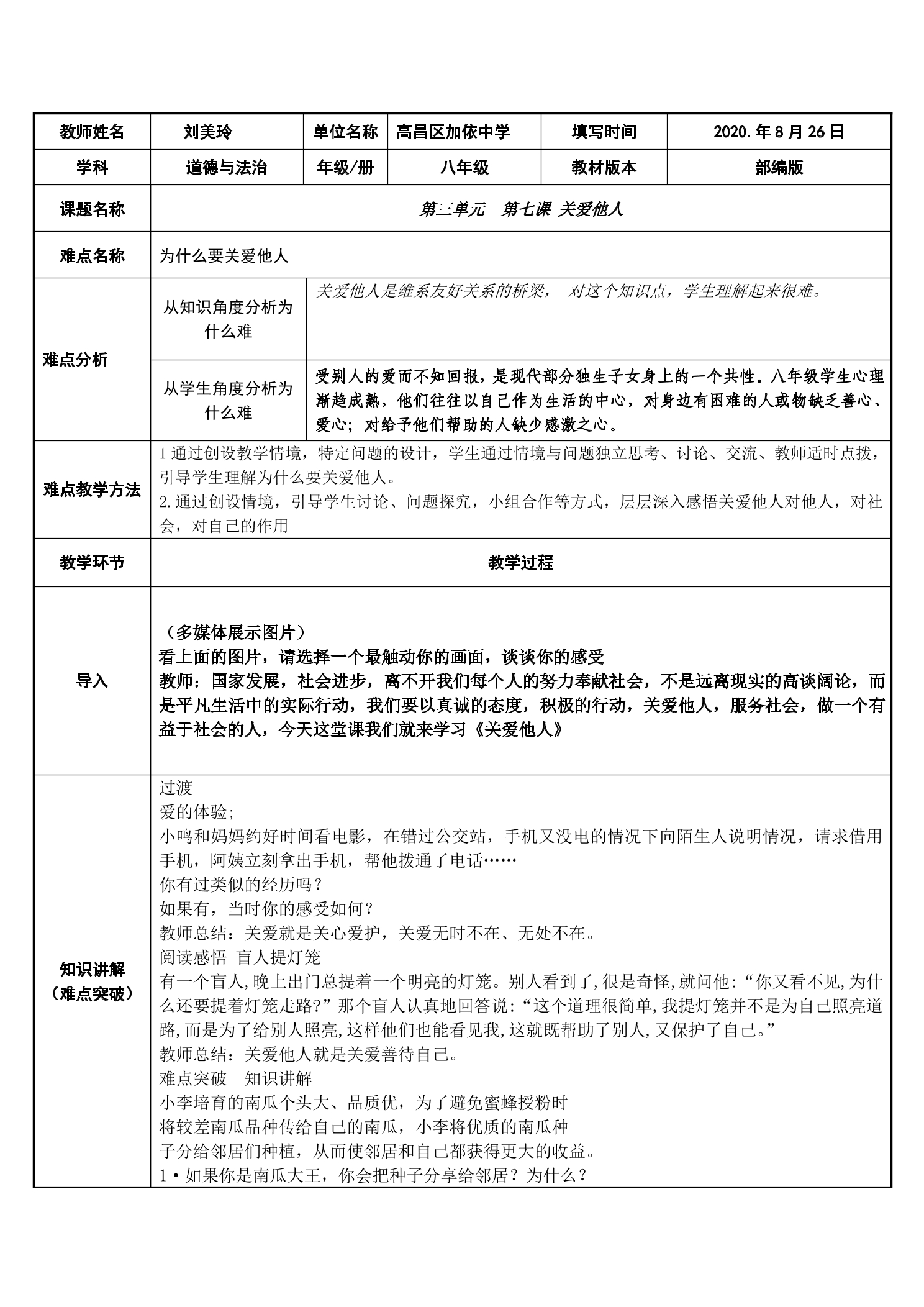 标签: 网龙、 教学资源、 三等奖、 新、 道德与法治、 1级、 教学设计、 文档、 重难点教案、 2020年后赛事资源、 ZYK、 人民教育出版社(人教版部编版)、 ZYKB、 教案、 正规教育、 教案、 K12、 获奖教案、 初中、 101教育PPT成套资源、 素材类型、 八年级、 有课件教案微课、 上册、 有知识点
