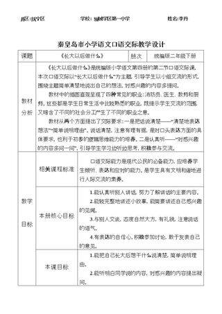 这是一套关于《口语交际:长大以后做什么》的素材,格式为DOC,文件大小为0.05 MB,页数为5页,请使用101教育PPT软件打开使用;