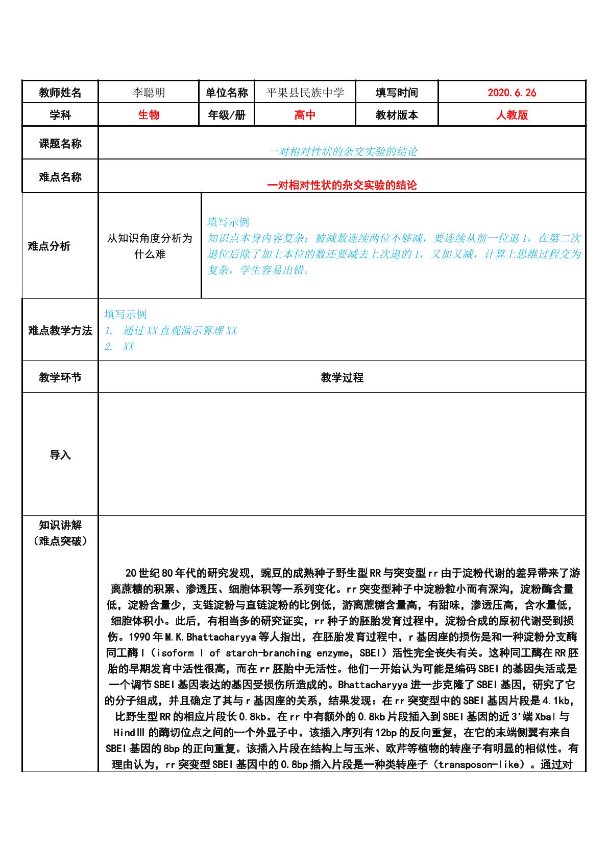 这是一套关于《一对相对性状的杂交实验的结论》的素材,格式为DOCX,文件大小为0.02 MB,页数为5页,请使用101教育PPT软件打开使用;