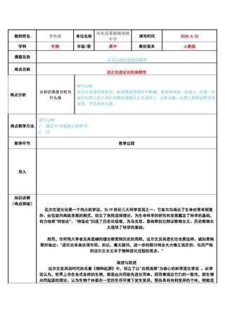 这是一套关于《达尔文进化论的局限性》的素材,格式为DOCX,文件大小为0.02 MB,页数为5页,请使用101教育PPT软件打开使用;