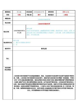标签: 网龙、 教学资源、 教案、 新、 正规教育、 教案、 1级、 教学设计、 文档、 K12、 重难点教案、 2020年后赛事资源、 ZYK、 101教育PPT成套资源、 素材类型、 必修3:稳态与环境、 人民教育出版社(人教版)、 生物、 高中、 ZYKB