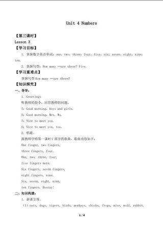 这是一套关于《Unit 4 Numbers Lesson 3_学案1》的素材,格式为DOCX,文件大小为0.02 MB,页数为4页,请使用101教育PPT软件打开使用;