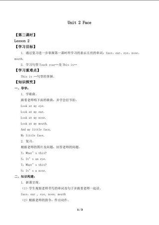 这是一套关于《Unit 2 Face Lesson 2_学案1》的素材,格式为DOCX,文件大小为0.02 MB,页数为3页,请使用101教育PPT软件打开使用;