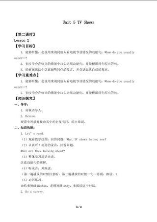 这是一套关于《Unit 5 TV Shows Lesson 2_学案1》的素材,格式为DOCX,文件大小为0.02 MB,页数为3页,请使用101教育PPT软件打开使用;