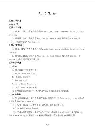 这是一套关于《Unit 5 Clothes Lesson 2_学案1》的素材,格式为DOCX,文件大小为0.02 MB,页数为3页,请使用101教育PPT软件打开使用;