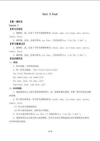 这是一套关于《Unit 3 Food Lesson 1_学案1》的素材,格式为DOCX,文件大小为0.02 MB,页数为3页,请使用101教育PPT软件打开使用;