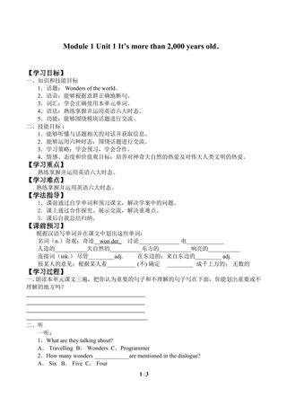 这是一套关于《Unit 1 It's more than 2,000 years old._学案1》的素材,格式为DOC,文件大小为0.03 MB,页数为3页,请使用101教育PPT软件打开使用;