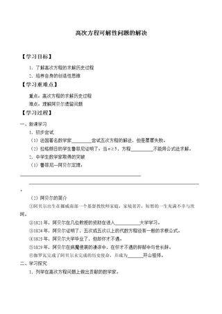 这是一套关于《高次方程可解性问题的解决》的素材,格式为DOCX,文件大小为0.02 MB,页数为2页,请使用101教育PPT软件打开使用;