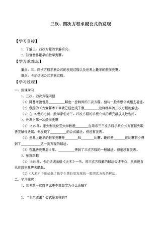 这是一套关于《三次、四次方程求根公式的发现》的素材,格式为DOCX,文件大小为0.02 MB,页数为2页,请使用101教育PPT软件打开使用;