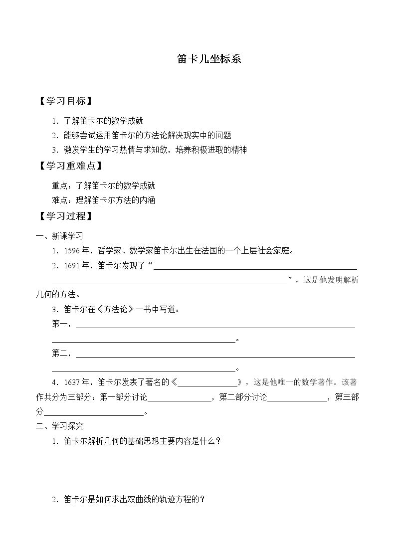这是一套关于《笛卡儿坐标系》的素材,格式为DOCX,文件大小为0.02 MB,页数为2页,请使用101教育PPT软件打开使用;