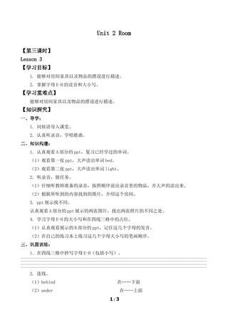 这是一套关于《Unit 2 Room Lesson 3_学案1》的素材,格式为DOCX,文件大小为0.02 MB,页数为3页,请使用101教育PPT软件打开使用;