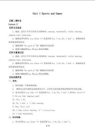 这是一套关于《Unit 1 Sports and Games Lesson 2_学案1》的素材,格式为DOCX,文件大小为0.06 MB,页数为3页,请使用101教育PPT软件打开使用;