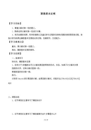 这是一套关于《算术基本定理》的素材,格式为DOCX,文件大小为0.02 MB,页数为2页,请使用101教育PPT软件打开使用;
